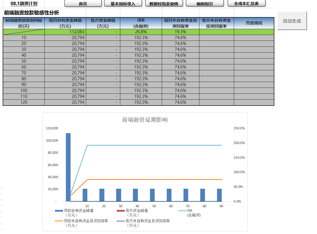 1、系统内置各类敏感性分析宏,实现敏感性分析数据自动计算,一键自动生成
